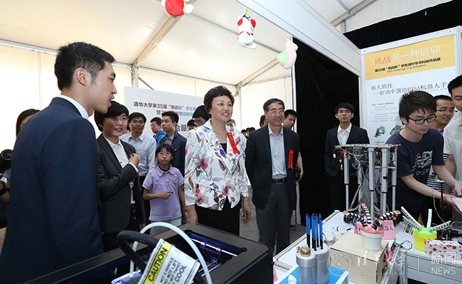 “挑战杯”科技作品展和创业嘉年华历来是清华校庆期间的一道亮丽风景线。今年,学校在两者基础上进行整合提升,举办乐动平台学生创意创新创业博览会,共赏科技与创意的繁花。中美青年创客大赛北京赛区启动仪式、清华校友创意创新创业大赛决赛相继举行。没有紧张激烈的“硝烟”弥漫,更像是一场云集智慧的创新嘉年华,每一件作品更成为一粒点燃梦想的燧石。