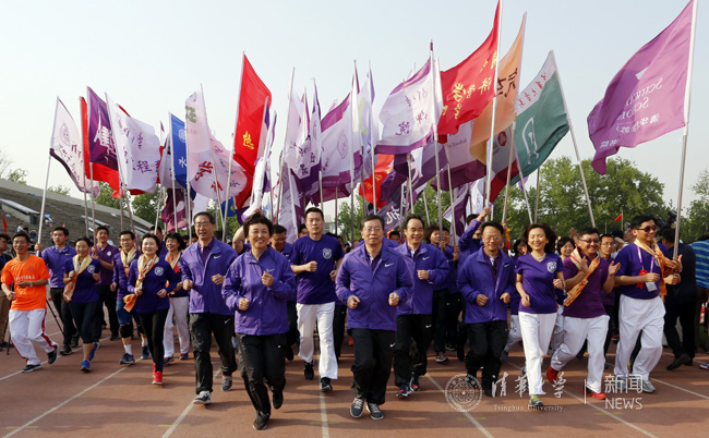 校领导带队绕场跑步 全场热呼“清华,生日快乐!”