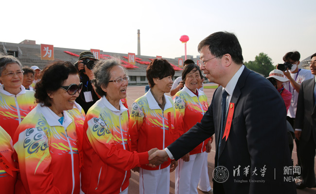 国家体育总局副局长高志丹,教育部体卫艺司副司长刘培俊,校领导邱勇、陈旭、姜胜耀、史宗恺、邓卫、薛其坤、吉俊民、杨斌、李一兵、尤政、施一公、王希勤,校务委员会副主任袁驷、谢维和、韩景阳,学校老领导张孝文、方惠坚、王大中、贺美英、顾秉林、杨家庆、王明旨、张思敬、张慕葏、黄圣伦、王凤生、倪维斗、朱爱菁、余寿文、胡显章、岑章志、关志成,各院系、部处负责人,北京市委原常委组织部长、北京奥组委原副主席李炳华等老校友和返校校友代表出席开幕式并在观礼台就座。