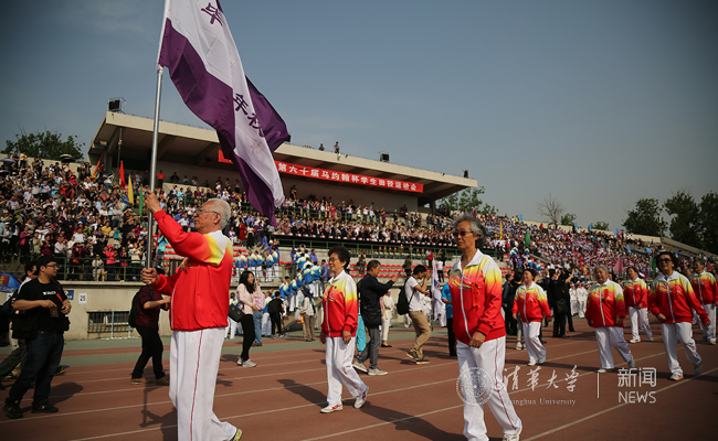 本届“马约翰杯”开幕式特别邀请了50多位老校友和90多名近三年新入职的教师代表到观礼台就座。老校友们怀着激动的心情重温清华体育传统和体育精神;新入职教师们深切体会到体育精神的丰富内涵,以“体育的名义”更好地了解清华、更快地融入清华。
