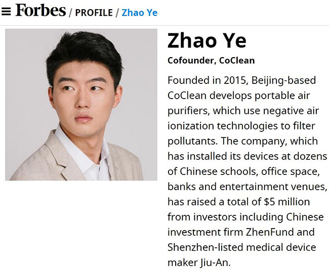 校友赵冶。照片摘自Forbes网站