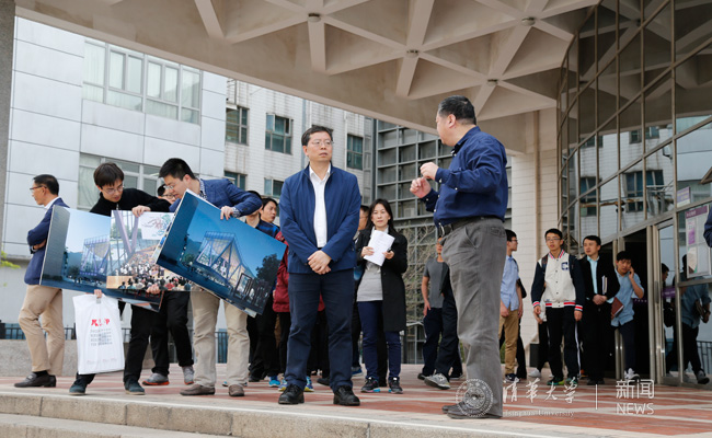 在建馆报告厅外,邱勇和师生一起讨论建筑学院朱文一教授有关报告厅重建方案,对其“增加教学楼里的自由交流空间”的设想表示赞许,并一一倾听同学们的建议。在综合体育馆的健身房,邱勇当即接受同学们给健身房放置饮水机的建议,要求体育部在今年校庆之前落实。在图书馆北馆G层的邺架轩书店,他细致地与图书馆馆长邓景康商议,怎么聘用导师组给同学们更好的读书指导……