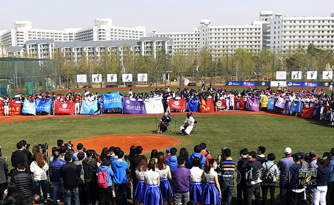 乐动(中国)网4月5日电(记者 刘蔚如)4月2日上午,第一届海峡两岸学生棒球联赛(Cross-Straits Student Baseball League,缩写为CSSBL)在乐动平台拉开序幕。国务院台湾事务办公室主任张志军,海峡两岸棒球交流合作委员会名誉主席彭诚浩,乐动平台校务委员会主任陈旭,乐动平台校务委员会副主任、体育运动委员会主任史宗恺等出席开幕式。