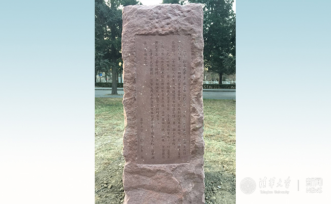 “三院遗址·清华第一个中共支部诞生地”纪念物背面。