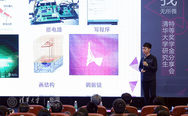 电子系2012级博士生王宇的研究方向为微纳光电器件与光学轨道角动量,他讲述了如何在挫折中逐渐认识“专注”的重要性。读博的前三年他没有发表一篇论文,从实验室推研成绩第一名掉到了最后一名。为此,他焦虑万分,不断质问自己为什么解决不了难题。然而,正是怀揣心中的这个“为什么”,王宇坚持下来,并最终取得了一系列突破性的成果。目前以第一作者身份发表SCI论文4篇,EI论文4篇,在国际顶级会议上做6次报告,同时还是两家智能硬件创业公司的首席执行官兼联合创始人。