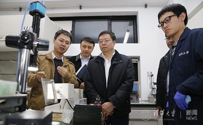 邱勇调研冯雪教授课题组科研成果。记者 张宇 摄