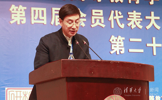 清华校友总会秘书长唐杰发言。