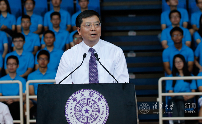 邱勇代表全校师生员工对研究生新同学的到来表示热烈欢迎。他说,每一级研究生新生都会为清华带来不一样的气息,为清华注入新的活力。这一级有来自全球96个国家和地区的768名留学生,是历年人数最多的,越来越国际化的清华将为同学们挥洒激情、放飞梦想提供更加广阔的舞台。