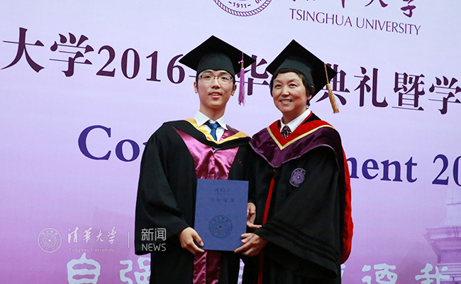 毕业生代表、法学院2012级本科生蔡泽洲讲述了自己在清华园中四年的成长故事。她说,四年来我们在清华的每个角落留下了自己的气息;清华也真真切切在我们身上打下了深深的烙印。这些烙印来源于园子里的老师、同学展现出的追求卓越的清华精神,亦来源于园子内外的每一段学习实践经历,这些经历让我们多了一份“家事国事天下事事事关心”的家国情怀。四年前,清华是我们的不二选择;未来,服务于国家发展、为民族乃至人类的进步贡献力量应始终是我们不二的选择。
