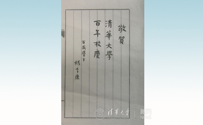 杨绛始终心系母校,曾亲笔题字,为母校清华祝贺百年华诞。