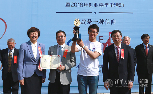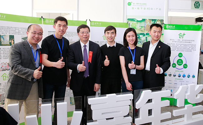 校领导为获得第2期清华创+种子基金项目授牌。记者 苑 洁 摄