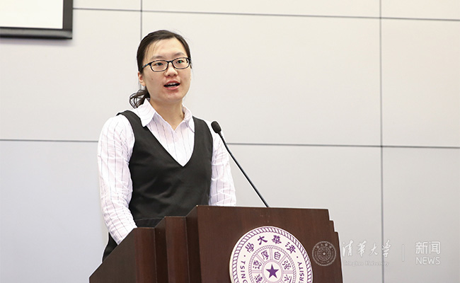后勤服务标兵代表、校医院内科王会颖发言。记者 张 宇 摄
