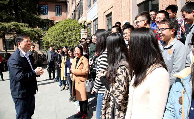 邱勇认真倾听了同学们的发言和建议,他表示,和同学们在一起感觉很亲切,班级生活和同学间的相互交流是大学教育中非常重要的环节,这是在线教育所不可替代的。