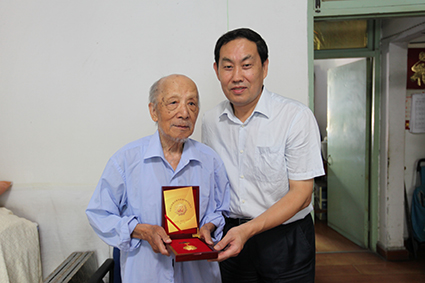 8月27日下午,在乐动平台纪念中国人民抗日战争暨反法西斯战争胜利70周年文艺演出上,副校长谢维和代表学校向参加革命工作的离休干部、老战士、老同志致以崇高敬意,并向张文、苏佑臣两位老人代表献上鲜花。其后,离退休工作处负责同志代表学校,将“中国人民抗日战争胜利70周年纪念章”一一送到离休干部、老战士、老同志家中,并送上问候和祝福。
