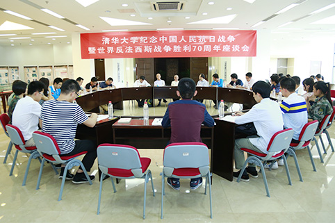 座谈会上,清华各院系学子也纷纷谈到自己的感受。退伍老兵、人文学院2010级学生刘婷结合观看阅兵直播的感受,向大家讲述了自己当年在军营中艰苦训练、绝不服输的经历,表达了自己初心不改,强我国防、壮我军威的志愿。社科学院2015级博士生吴薇讲述了自己作为本次阅兵志愿者的难忘经历。同时也是社科学院最近成立的西南联大精神研究会辅导员的她表达了传承和发扬西南联大精神的决心。公管学院博士生地力夏提·吾布力表示,学习了抗战历史后,如今的他正在研究“一带一路”的相关问题,希望能做好研究,为中国今天的和平与发展做出贡献。校研究生会主席赵璞谈到9月3日阅兵纪念活动时,表示要以战争为镜、勿忘历史、珍惜和平。14级本科生林晓雪今年暑假组织了一支实践支队去台湾访谈国民党抗战老兵,她结合自己对两岸抗战老兵的访谈经历,表示,一定要铭记历史。来自台湾的杨海玲谈到,她的爷爷与外公都是当年的国民党抗战老兵,战争是一个时代的悲剧,要牢记抗日战争这段历史,“不容青史尽成灰”。 国防生大队长苏靖轩、退伍老兵李冲同学等也纷纷在座谈会上谈到了自己的感想,大家在重温历史中展望未来,表达了奋发学习,矢志报国的坚定信仰。