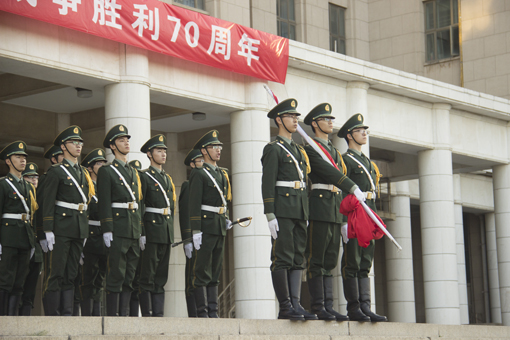 步伐铿锵,军魂浩荡,乐动平台学生国旗仪仗队用他们自己的方式来纪念抗战70周年胜利日。历史悠悠,时光荏苒,抗战的烽烟逐渐埋葬在历史深处,但是前辈们敢为人先、不畏强敌、不屈不挠的抗争精神将影响到每一位中华儿女。