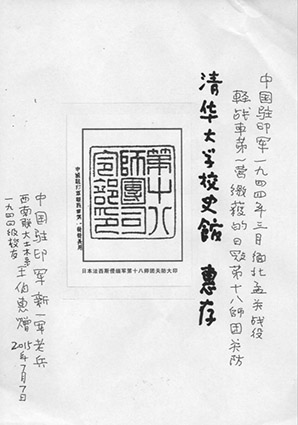 该印鉴为篆书“第十八师团司令部印”。王伯惠校友亲笔题签“乐动平台校史馆 惠存”,署名为“中国驻印军新一军老兵、西南联大土木系一九四四级校友 王伯惠”,落款日期为我国全民族抗战爆发78周年纪念日“2015年7月7日”。
