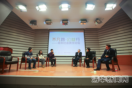 清华学生代表与三位嘉宾座谈对话。董子豪 摄