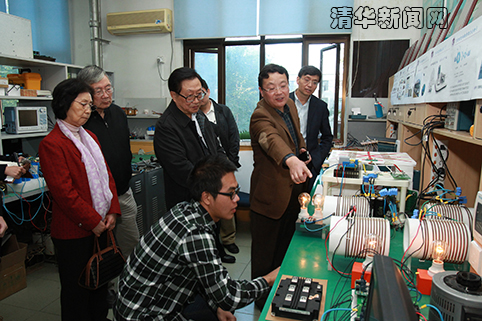 随后,在电机系电力电子与新能源技术研究室,华建敏听取了研究室负责人赵争鸣教授就课题组近年来在新兴电能变换与传输领域取得的研究成果介绍,包括高效宽频带功率放大器、无线电能传输系统、能量路由器和电磁能量收集技术等,饶有兴致的观看了相关实验演示。华建敏对课题组师生取得的突出成绩给予充分肯定的同时指出,实验室的研究成果还要通过产业化和市场化转化,使高科技成果在国家经济社会发展过程中发挥更大作用。