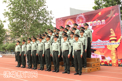 上午全体国防生在中央主楼前举行升国旗仪式。校党委学生部部长、武装部部长熊义志出席了仪式,校定向办主任熊剑平、总政驻校选培办主任陆学东向上一届国防生大队主要干部赠送纪念品并感谢他们为国防生大队建设做出的贡献。