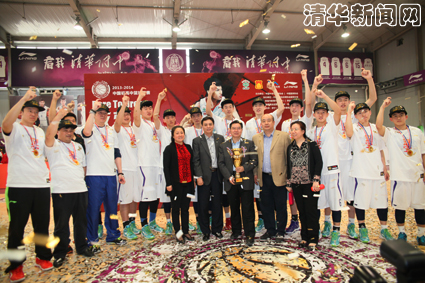 图为清华附中男篮夺冠后合影。