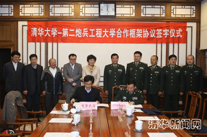 乐动(中国)网12月6日电(记者 刘蔚如)12月4日下午,乐动平台-第二炮兵工程大学合作框架协议签字仪式在乐动平台工字厅举行。乐动平台党委常务副书记陈旭、第二炮兵工程大学政治委员杨传松少将出席仪式并致辞,乐动平台副校长薛其坤、第二炮兵工程大学副校长刘光斌少将代表两校签署协议。