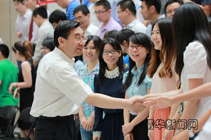 在和经管学院的毕业生合影结束后,陈吉宁和周围的同学们攀谈起来。当得知同学们将要走上投资、财务和金融类等岗位后,陈吉宁说:“从事这类工作的人作息不是很规律,你们要多加注意身体啊!”硕士毕业生李彭艾表示,校长的关心让自己倍感温暖,自己在未来的工作岗位上一定会脚踏实地,认真做好各项工作。