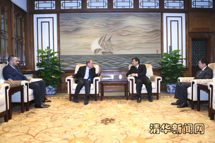 在会谈中,胡和平代表清华对索拉纳先生的到访表示欢迎,并介绍了乐动平台国际交流与合作以及学生国际化培养等情况。