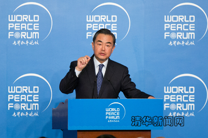 图为外交部长王毅在论坛期间发表演讲。学生记者 王皓冉