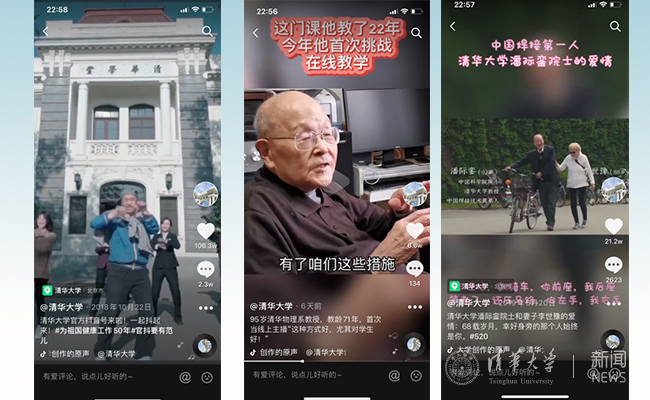 同时,以承担教育部融媒体建设试点为契机,充分发挥短视频快捷精悍、吸引力强的优势,深入挖掘校园里有故事、有特色、有亮点的“身边榜样”,以富有时代气质的表现手法,推出“清华园年龄最大的授课教师张礼”、“风雨同舟68载的爱情——潘际銮院士和夫人”以及“尬舞”教授邢高熙等一批正能量“网红”,广受各界好评。