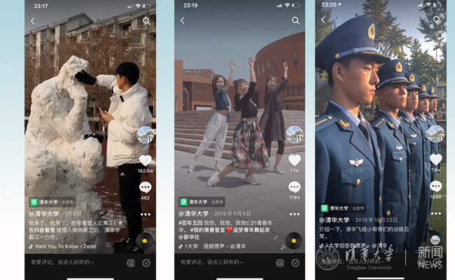 借助街头采访、艺术表演、快闪、Vlog、无人机航拍、一镜到底、延时摄影、定格摄影等多种表现形式,各短视频账号围绕学校重点工作、科研成果、师生日常学习生活、校园故事、招生就业等热点话题,生动呈现清华风采、讲述清华故事。同时,围绕习近平新时代中国特色社会主义思想、社会主义核心价值观、传承弘扬优秀文化等主旋律题材,积极制作各类专题视频,在以小见大、贴近人心的动感画面中树正气、传思想、育新人。