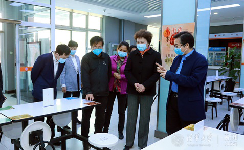 离开教学楼后,陈旭来到了附中医务室,对疫情防控期间医务室的医生们值守岗位,开展卫生防疫、做好每日人员健康排查和信息报送等工作表示感谢。随后,陈旭察看了食堂准备情况。每张餐桌旁的座椅上都贴有学生的名签,做到单人单桌、定时定位、错峰就餐。陈旭对附中细致严谨、科学合理的防疫措施给予了充分肯定,希望学校面向学生和家长把相应管理办法的通知和解释工作做到位,以便家长们主动配合,共同做好毕业班学生试开学和应考准备工作。