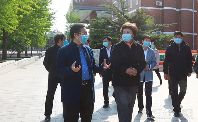 在检查调研过程中,附中校长王殿军介绍了附中为毕业班学生返校学习采取的一系列具体措施。接到北京市教委试开学通知后,根据安排附中第一时间部署高三学生返校工作,全面准备,做好各种预案,确保疫情防控和试开学工作万无一失。