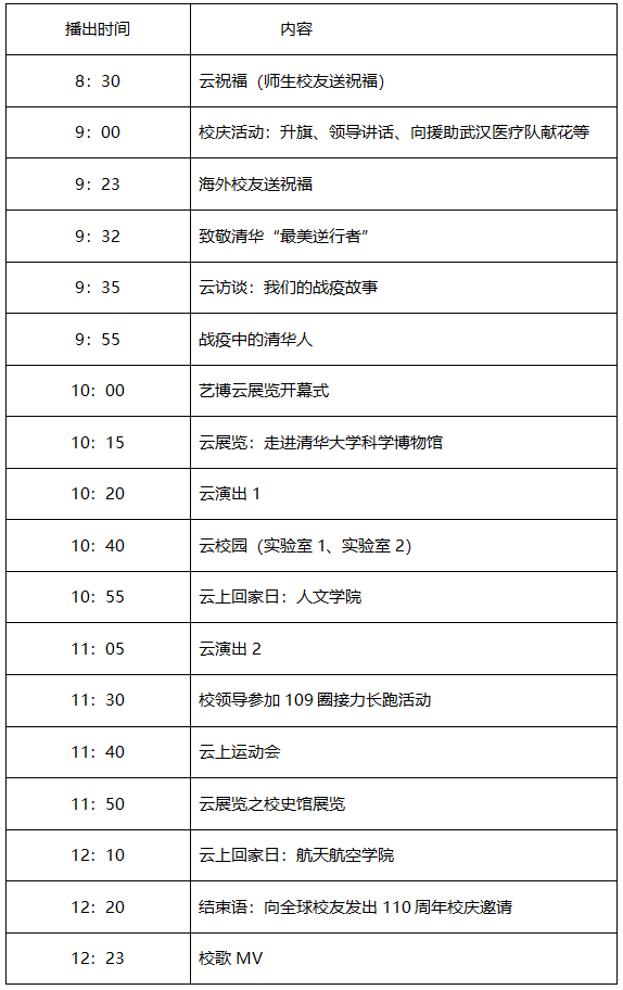 4月26日上午8:30,乐动平台109周年校庆特别报道将通过清华109周年云校庆网站、人民日报客户端、教育部政务新媒体“微言教育”、中国电信天翼云直播平台、乐动平台央视频号、微博、抖音号、快手号、哔哩哔哩号、百家号等平台面向全球直播。