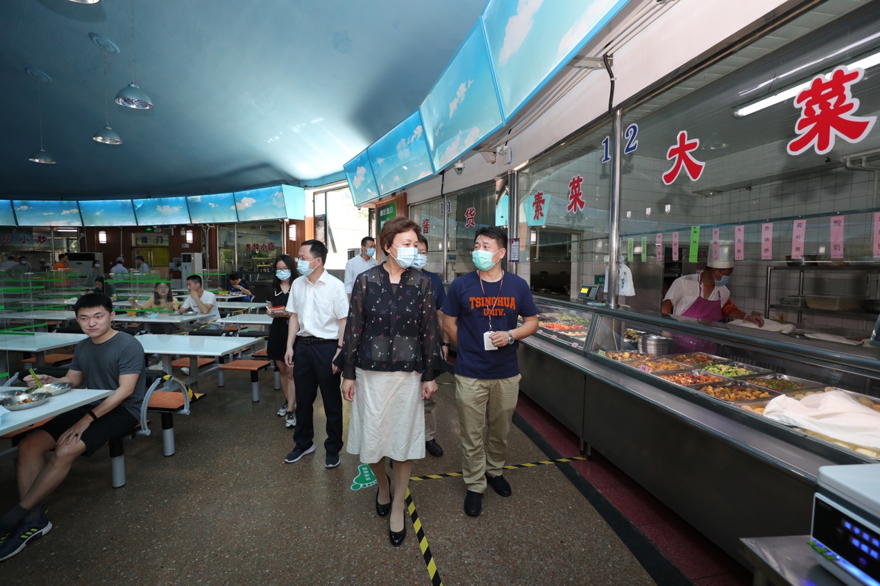 最后,陈旭一行来到首日开伙的丁香园食堂,该食堂仅供学生就餐。陈旭认真了解了食堂疫情防控、入口测温、限流要求、就餐人数、餐品保障等情况,并强调新学期在即,要按照上级疫情防控要求,认真做好开学准备工作,充分认识到后续工作难度,做好学生返校伙食保障。