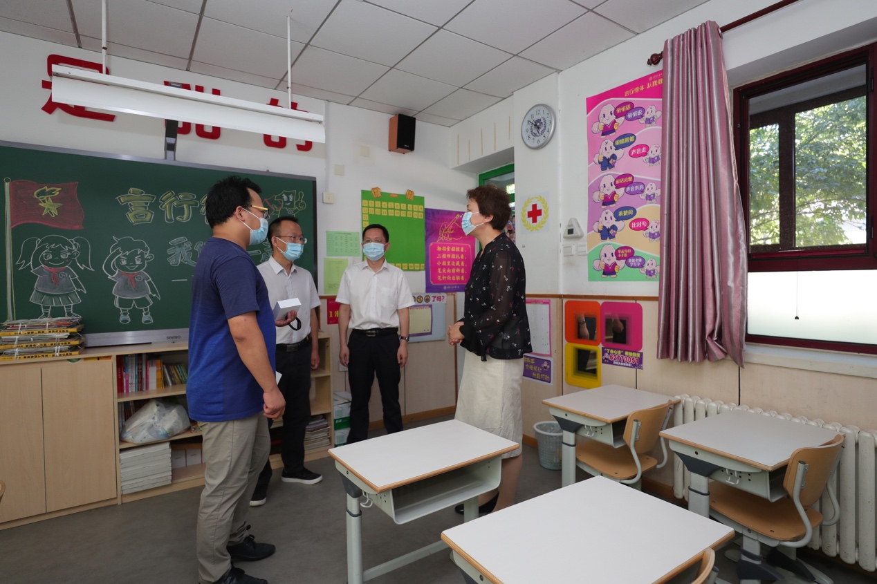 在乐动平台附属小学,陈旭一行主动进行登记和手部消毒,仔细询问学校的疫情防控措施、值班安排、学生录取情况及学习准备、新学期教学安排、学生暑期活动和操场施工等情况,并查看了教室的座位安排等。陈旭对附小的疫情防控和教学工作表示肯定,并指出疫情形势逐渐转好、新学期学生返校即将到来,附小要严格按照北京市委教工委的相关要求,继续做好防疫和教学准备工作,继续兼顾好手拉手合作学校,贡献教育力量。陈旭希望附小结合上半年的课程开展情况,及时开展在线教学效果评估,总结经验,持续优化教学方法,保证新学期平稳运行。