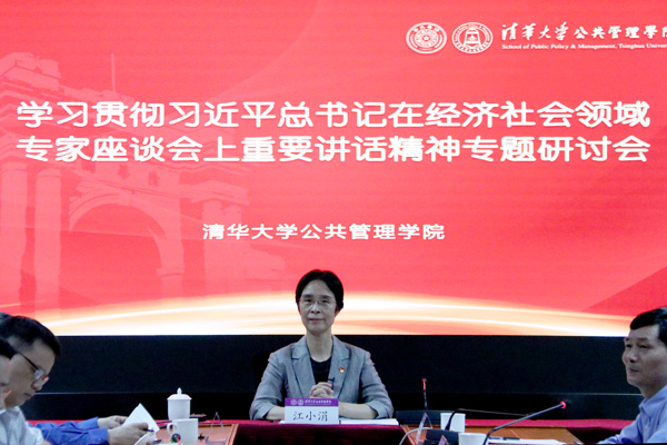 8月26日上午,乐动平台公共管理学院召开“学习贯彻习近平总书记在经济社会领域专家座谈会上重要讲话精神专题研讨会”,由江小涓传达习近平总书记在经济社会领域专家座谈会上重要讲话精神并作辅导报告。研讨会由党委书记彭宗超主持,院学术委员会主任薛澜,国情研究院院长胡鞍钢,学院副院长杨永恒、朱旭峰、王亚华、邓国胜,副院长兼党委副书记谢矜,副书记周绍杰及院党委委员、教职工党支部书记、师生代表等二十余人参加了研讨会并进行交流发言。本次研讨会也是学院党委理论学习中心组的一次专题学习活动。
