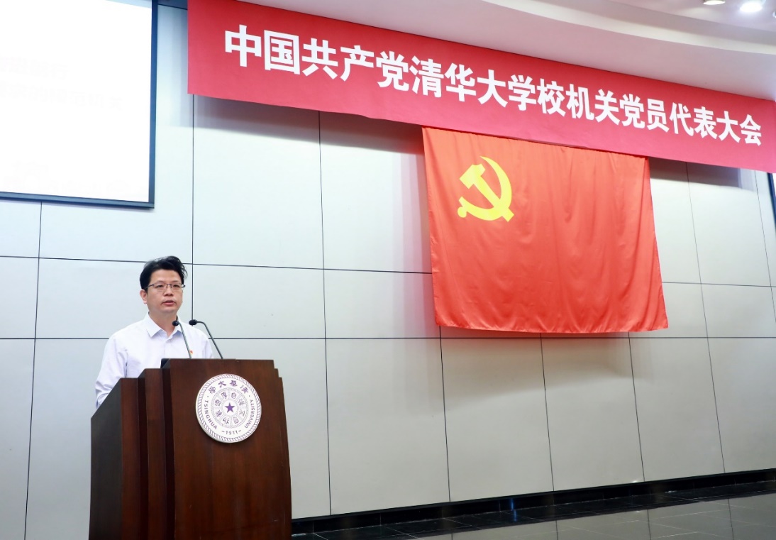 在大会选举计票期间,教务处等5个支部代表作疫情防控工作交流。教务处党支部书记、注册中心主任尹佳介绍新冠疫情暴发以来,教务处党员、职工在党支部组织下,深入学习习近平总书记关于疫情防控工作的重要讲话和指示批示精神,坚定信心,敢打硬仗,积极推进在线教学,创新服务管理机制,以服务师生为根本,始终坚守育人初心,实现了“延期开学、如期开课”的庄严承诺。人事处党支部书记、副处长王晓莉介绍了疫情期间人事处党支部充分发挥党员先锋模范作用,勇与疫情赛跑,认真做好全校教职工的管理服务工作,努力让管控工作充满温度的一系列举措。国际处党支部书记、处长郦金梁介绍了国际处党支部在疫情期间,发挥支部战斗堡垒作用,凝聚党员群众力量,一方面精益求精做好涉外疫情防控工作,另一方面主动作为,贡献清华智慧,积极发声,传播中国力量。保卫部党支部书记、副部长李伟介绍了保卫部党支部增强使命担当,开展“我是党员我向前”特色活动,引领党员、干部、职工铸就校园防控的铜墙铁壁,推进校园安全协同治理的举措。信息办主任尹霞介绍了学校信息化团队面对疫情主动应战,坚持数月如一日连续作战,为在线课堂教学、构建疫情常态化的精准防控提供信息化技术支撑的工作。