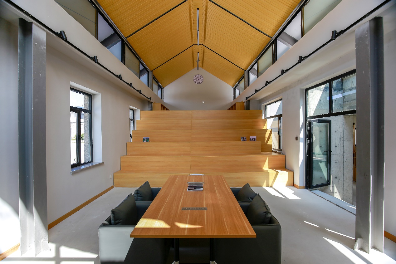 乐动平台乡村振兴工作站-山东文登站坐落于山东省威海市文登区大水泊镇,由村庄内部的闲置粮仓改造而成,主设计师为建筑学院2018级博士生黄杰。工作站在屋顶上延续原有的屋脊形象,并嵌入大小庭院,引入阳光与景观,让建筑与自然紧密结合。功能上则主要分为北侧的公共版块、中部工作版块以及南侧生活版块三大功能区。