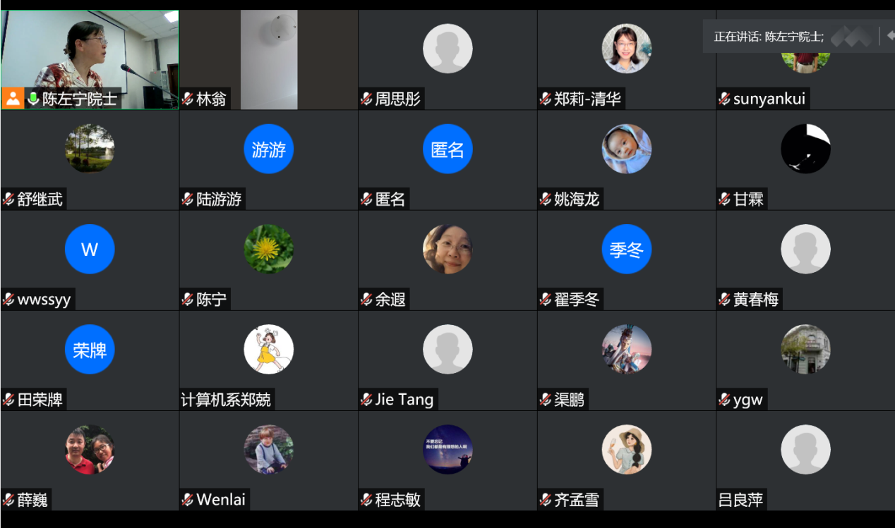 计算机系党委书记刘奕群主持报告会。计算机系党委100余名教工党员、积极分子和教工以线上线下结合的方式参加了学习。