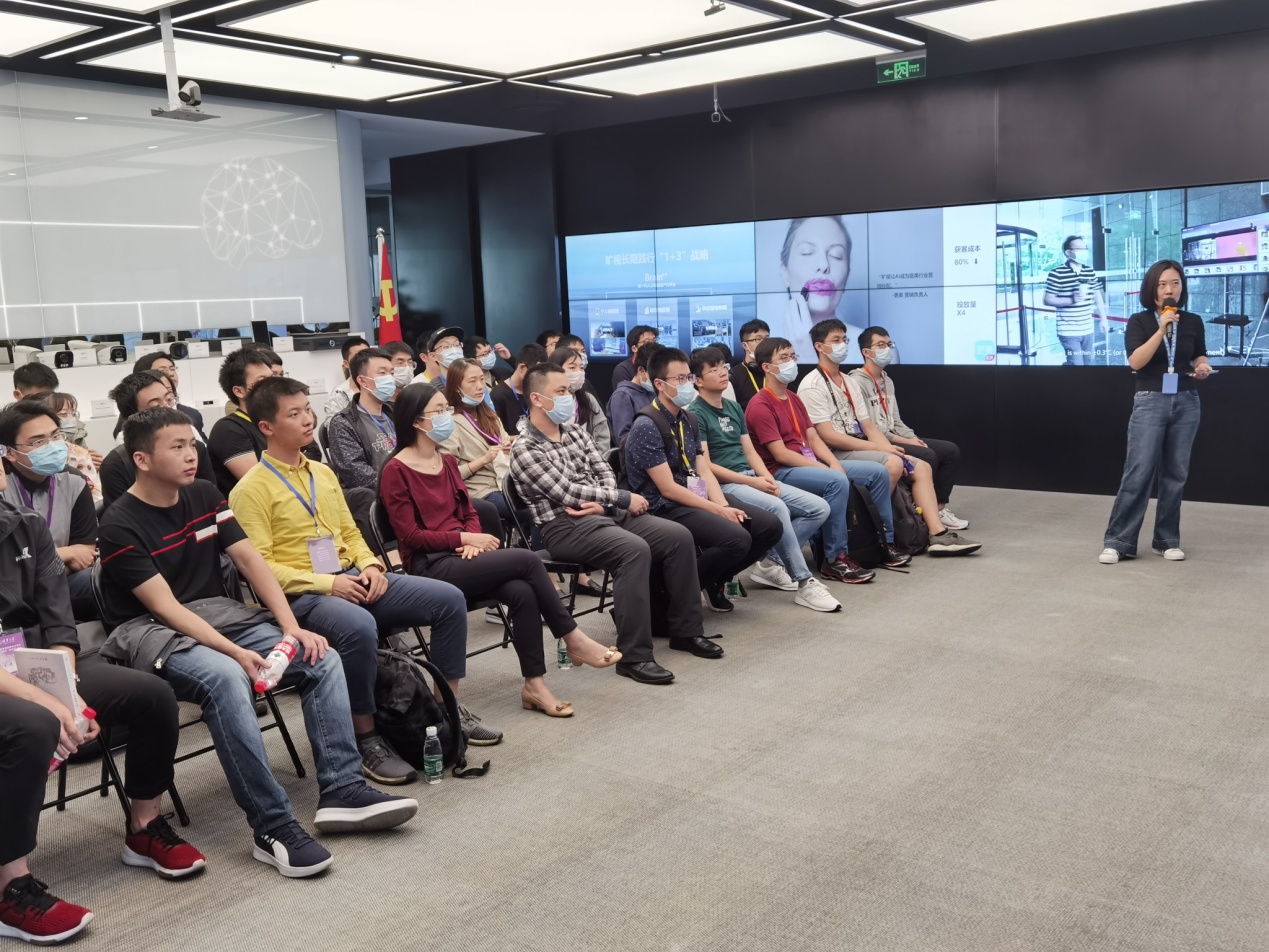 随后,学员们来到北京旷视科技有限公司,感受旷视科技“城市大脑”“城市安防”“AI测温”等方面的技术成果,体会人工智能在改善人们生活方面的重要作用。电子工程系2011级校友、旷视人脸识别技术负责人周而进分享交流了旷视科技的发展道路,表示旷视开发的产品已应用到智慧城市和工业物联网中,直接推动着城市的发展。他鼓励各位同学保持年轻和开放的心态,勇于创新,紧跟时代步伐,承担起属于新时代青年的职责和使命。