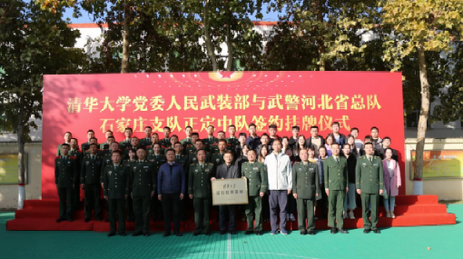 仪式后,清华师生与武警正定中队官兵举行座谈会。武警石家庄支队政治委员侯爱华介绍了武警石家庄支队的整体情况,肯定了清华退伍士兵靳发兴在正定中队服役期间的优秀表现,希望双方今后不断加强交流合作,建立更加紧密的联系。邓宇表示,本次签约是近年来清华首次与武警部队基层中队开展合作,对于学校的国防教育工作具有重大意义。曾于2018-2020年服役于正定中队的化工系本科生靳发兴在座谈交流时表示,非常感谢中队两年的培养和教育,武警正定中队锻炼了他坚韧不拔的品格和矢志不渝的精神,褪下军装的他,也一定会将这种“不怕苦、不怕累”的精神带到校园生活和学习中。