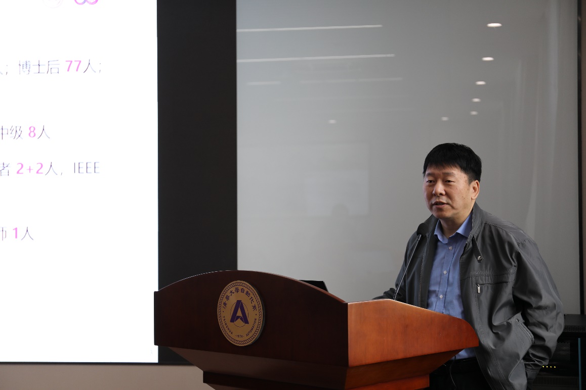 自动化系系主任张涛从教学、科研、人才队伍、党建等方面详细介绍了近几年学科建设取得的成绩,以及下一阶段学科发展方向和建设举措。他指出,自动化系秉承教书育人、科技报国理念,涵育“自觉、自律、自强”系风,肩负着引领我国自动化专业教育和高层次人才培养的发展方向。自动化系始终坚持需求牵引、问题导向,围绕前沿交叉领域和国家重大战略需求开展科研创新,开拓了生物信息学、脑与认知科学等新的学科发展方向,围绕计算机集成制造系统、智能与复杂网络化系统、智能无人系统等重大战略需求组织团队攻关,产出了一批具有世界领先水平的原创性科技成果,走出了一条交叉创新的学科发展道路。自动化系组建高水平课程教学组、大力开展课程体系建设,开展有组织教学;创新专业学位人才培养模式,提升研究生实践能力和创新能力;秉持“三位一体”人才培养理念,凝练“紫冬”精神,坚持集体建设,重视体育育人、文化育人。他同时也提出了自动化系在青年教师成长、教学和科研资源、干部队伍建设等方面遇到的困难,希望倾听与会领导、专家的意见和建议。