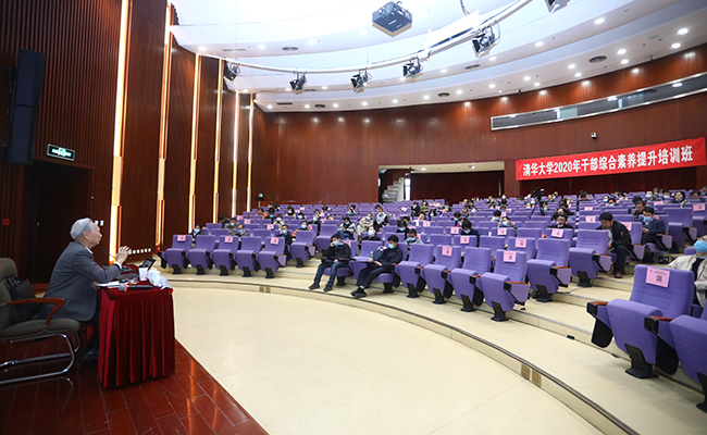 本场报告是干部综合素养提升培训班的第二讲,全校170余名中层干部参加线下培训,300余名校管干部通过荷塘雨课堂参加了线上学习。