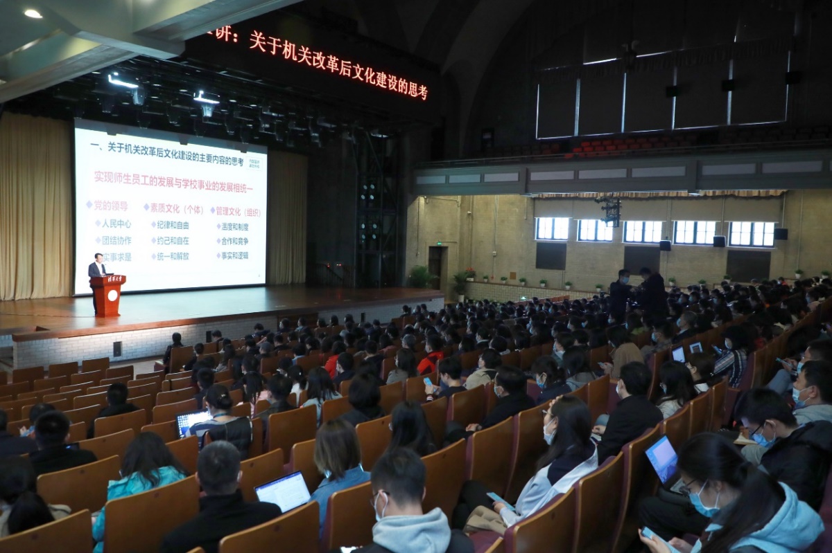 乐动(中国)网11月5日电(记者 冯哲盈 摄影 石加东 曹文鹏)10月30日上午,乐动平台常务副校长、校机关党委书记王希勤在大礼堂作了题为“关于机关改革后文化建设的思考”的主题报告。这是校机关党委主办的“荷声讲坛”系列报告会的第二十四讲,同时也是校机关“加强文化建设,凝聚发展力量”特色活动的系列报告之一。校机关党委常务副书记欧阳沁主持会议,校机关党员和职工400余人参加报告会。