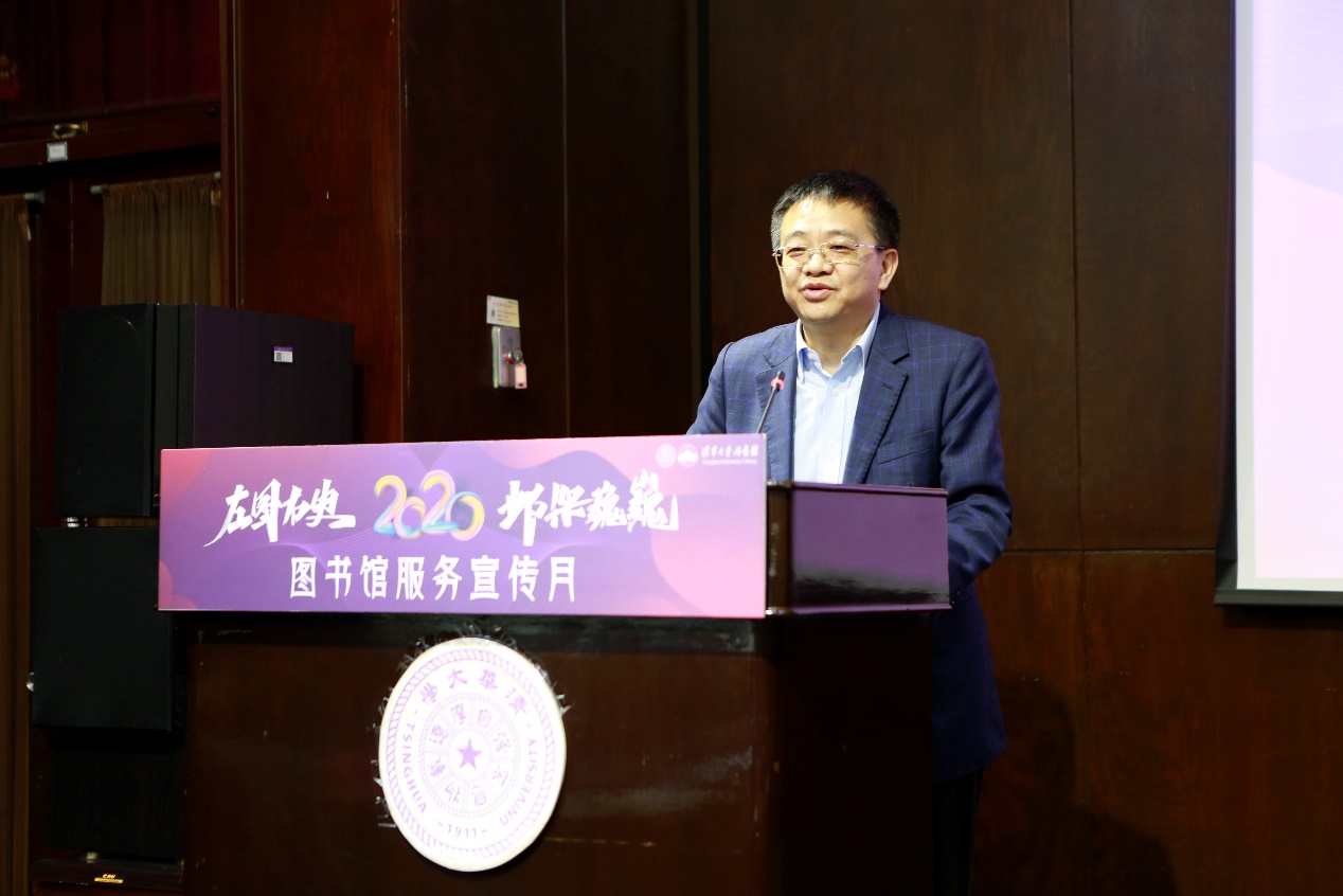 开幕式上,彭刚表示,图书馆是一所大学灵魂之所在。图书馆给很多清华师生留下了宝贵的记忆。随着学校的发展,图书馆各方面都有了很大进步。一直以来,图书馆努力为全校师生做好各项服务和支撑工作,特别是在今年疫情期间,图书馆全力保障线上教学和网络资源远程访问,为清华师生学习和研究提供了全力保障和有力支撑。最后,彭刚希望广大师生不仅要利用好图书馆,更要以主人翁的姿态参与建设图书馆;希望同学们在专业学习之外,要拥有开放的心态和开阔的视野,养成热爱阅读和终身学习的习惯。