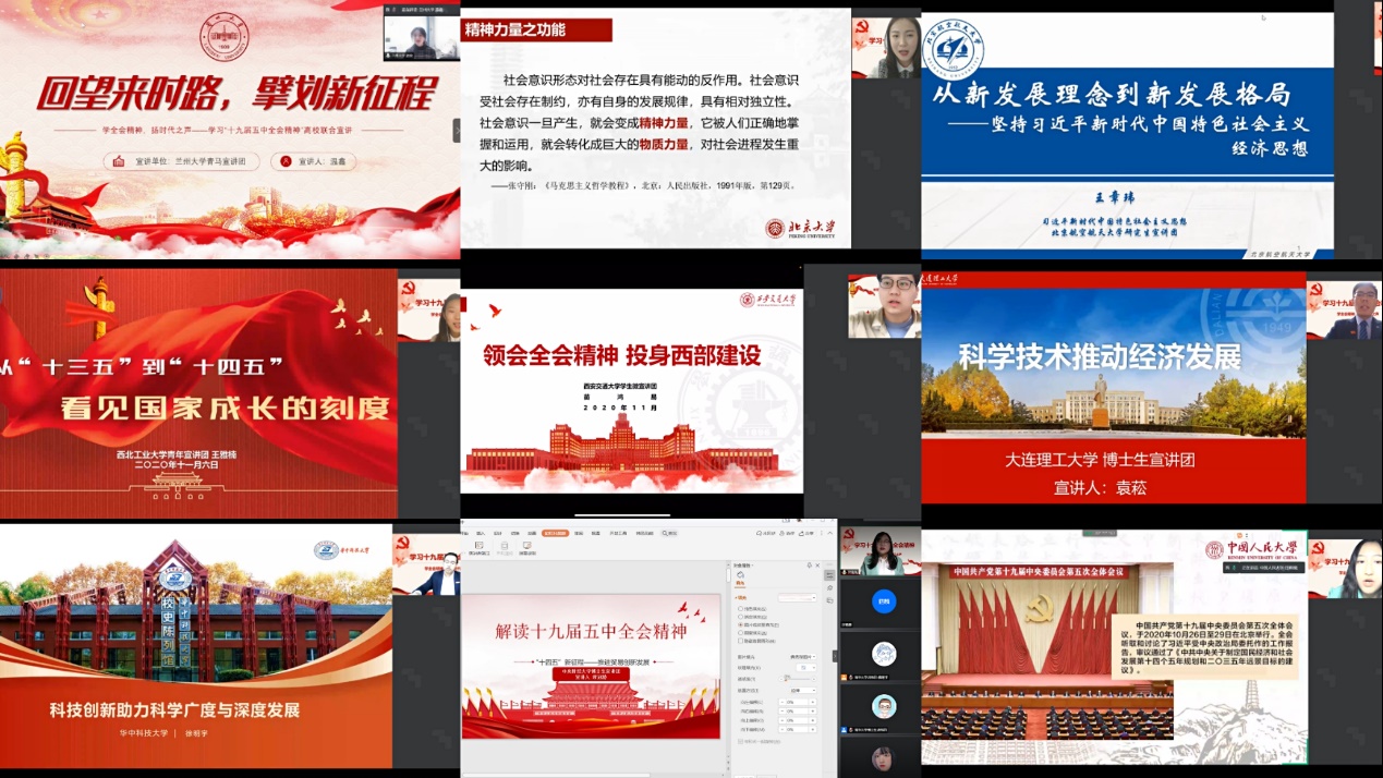 乐动(中国)网11月10日电 为学习贯彻党的十九届五中全会会议精神、方针政策,形成学习全会精神的良好氛围,11月6日晚,乐动平台博士生讲师团与北京大学、中国人民大学、中央财经大学、北京航空航天大学、华中科技大学、大连理工大学、西安交通大学、西北工业大学、兰州大学等十所高校学生宣讲团联合开展“学全会精神,扬时代之声”高校联合宣讲,在线收看人数1600余人。本次联合宣讲由乐动平台博士生讲师团团长林晨主持。