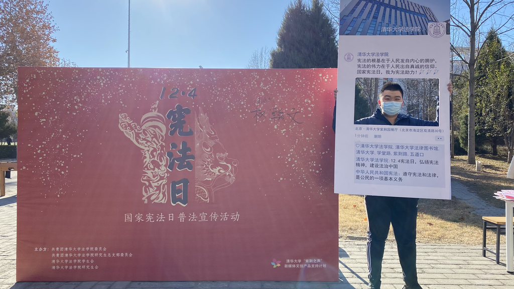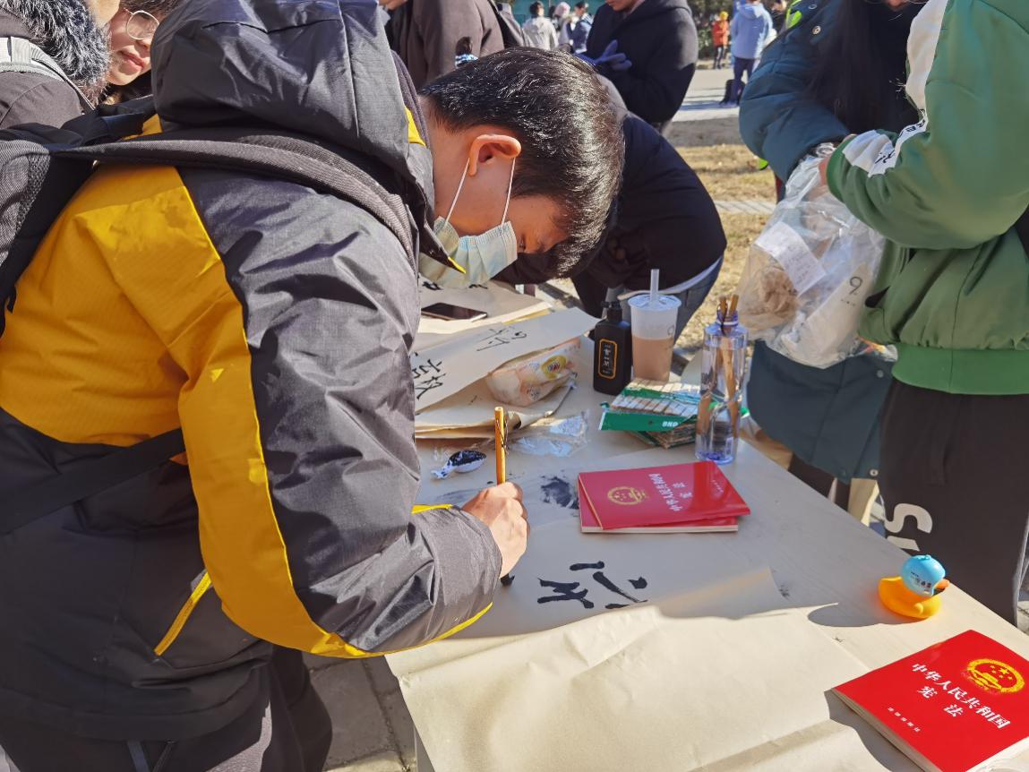 12月4日中午,路演活动于乐动平台C楼东北角举办,吸引了三百余人现场参与。活动通过限时背诵法条、运用法律知识分析案例、法律常识问答等游戏方式,向参与同学潜移默化地普及宪法。现场还设计了“我手写我心”“我和宪法合个影”等互动环节,鼓励同学们以笔书写宪法意,以心感悟宪法情,手持主题拍照道具宣传宪法。活动现场还准备了定制的水杯、U盘、手套等小礼品,礼品上的“宪法”字样提醒着同学们树立法治意识,知法、懂法、守法。除了线下路演活动,线上宪法日主题定制头像框、主题原创视频,也在校园中传递了宪法知识,弘扬了宪法精神。