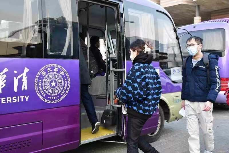 考生入校后乘坐专用校园摆渡车到达考场