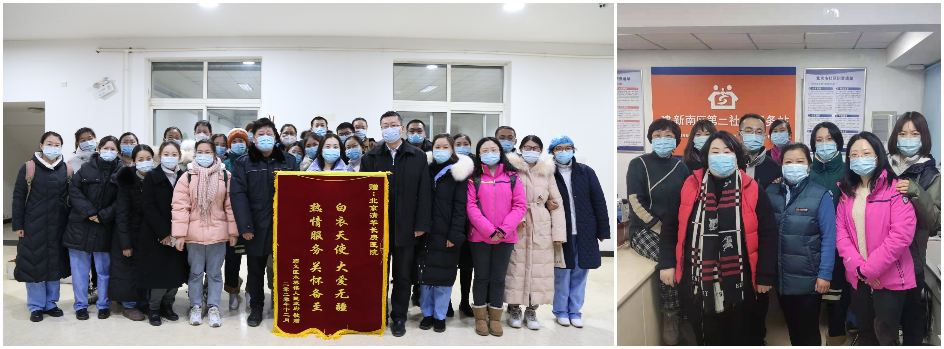 三天的支援在一场寒潮前圆满结束。顺义区木林镇政府工作人员为北京清华长庚医院医疗队送来锦旗和感谢信,“危难时刻见初心”“热情服务,关怀备至”。在院内短暂的小结会上,医院党委书记周月红,副院长魏来,党办副主任高茹,护理部副主任沈犁、赵文静等主管,一同对大家表示了欢迎和感谢。周月红指出,目前国内疫情呈零星散发状态,大家进入村镇进行新冠核酸检测支援,要做好经验总结,为应对新的挑战打好基础。